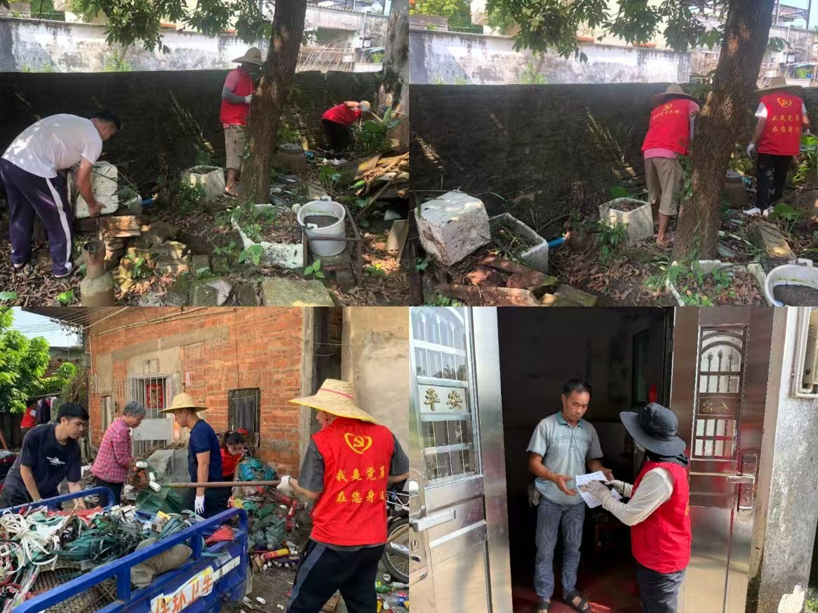 各村(社区)党员骨干带着水桶、抹布深入房前屋后,逐个检查花盆托盘、废旧轮胎、塑料瓶等易积水容器,做到“翻盆倒罐、不留积水”,一边清积水一边入户宣传爱国卫生运动的重要性,现场演示如何检查家庭积水死角,引导群众养成良好卫生习惯。实现“清环境、除隐患、防疫情”同步推进。